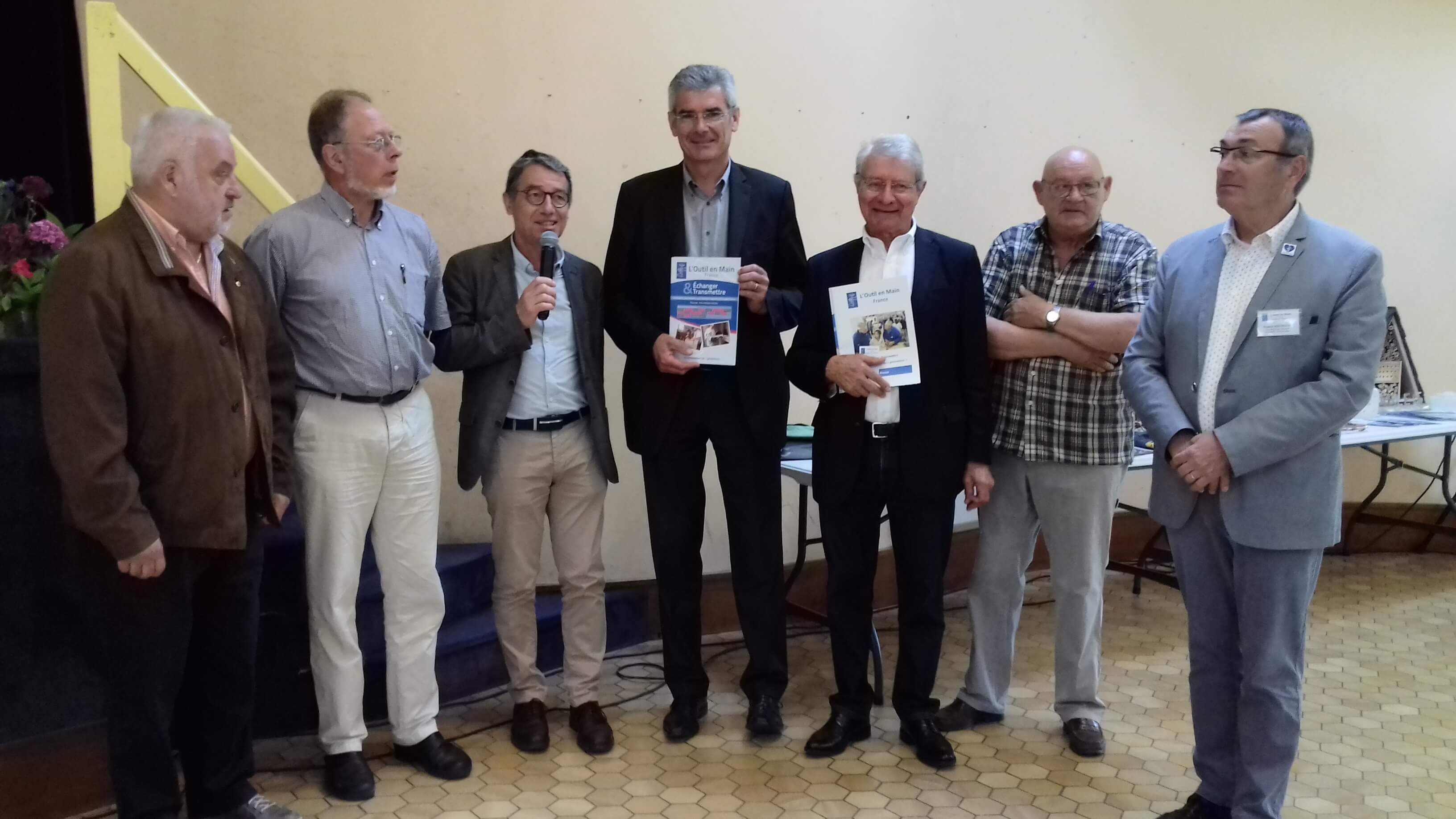 Rencontre Régionale des bénévoles de L’Outil en Main de Maine-et-Loire, Mayenne et Sarthe A l’initiative de Jacky Etienne (administrateur de L’Union et délégué territorial) et de Michel Hadet (Président de L’OeM de Beaufort-en-Anjou), 80 bénévoles des départements du Maine & Loire et de la Sarthe, se sont rassemblés le 31 mai dernier à Beaufort-en-Anjou (49). Ils représentaient 8 des 11 associations de ces 3 départements. Accueillis par le Président national Alain Lehébel, le Maire de Beaufort-en-Anjou, Serge Maye, et le député Jean-Charles Taugourdeau, ils ont pu apprécier l’organisation de cette journée orchestrée par les bénévoles de Beaufort-en-Anjou. Les bénévoles se sont répartis autour des tables rondes, souvent par métiers, afin de partager leurs pratiques et leurs expériences. Francis Bremaud, vice-président de L’Union en charge de la Communication, a piloté un atelier « extranet » afin d’accompagner les bénévoles à l’utilisation de cet outil de gestion. Le déjeuner « grillades » a été très convivial grâce aux bénévoles de Beaufort-en-Anjou qui ont pris en main le barbecue ! Des échanges fructueux ont été proposés avec le Président Alain Lehébel et le Trésorier de L’Union, Pierre Renaudin. Chacun(e) a pu entendre le développement de L’Outil en Main France et prendre connaissance des outils (guides, formations) proposés prochainement par L’Union à l’ensemble des bénévoles. Une présentation des outils de communication mis à disposition pour les associations a été effectuée en début d’après-midi, permettant à chaque association de communiquer dans le respect de l’identité visuelle de L’Outil en Main. Cette belle journée s’est terminée par le verre de l’amitié autour de l’exposition d’objets réalisés dans les ateliers L’OeM. Rendez-vous pour la prochaine rencontre régionale vendredi 17 mai 2019 à Chemillé (49) et merci à Michel Caillaud et aux bénévoles de L’OeM Chemillé d’avoir accepté cette organisation ! |
