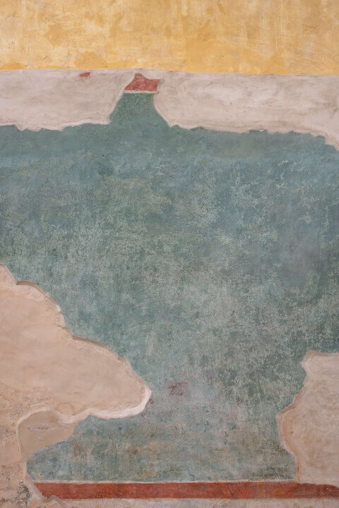 Le fresquiste travaille sur des enduits successifs composés de chaux, de sable et d’eau encore frais sur lesquels il applique des pigments naturels. Il peint a fresco (dans le frais) avant que ne s’opère la carbonatation (production chimique d’un film de calcite). L’ensemble deviendra un calcaire coloré de plus en plus dur.